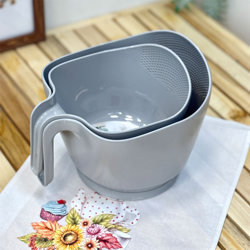 - به راحتی داخل خود ظرف میشورید و آب اضافه از قسمت دهانه کار که حالت ابکشی داره تخلیه میشه و چون دسته داره کارباهاش بی نهایت راحته.